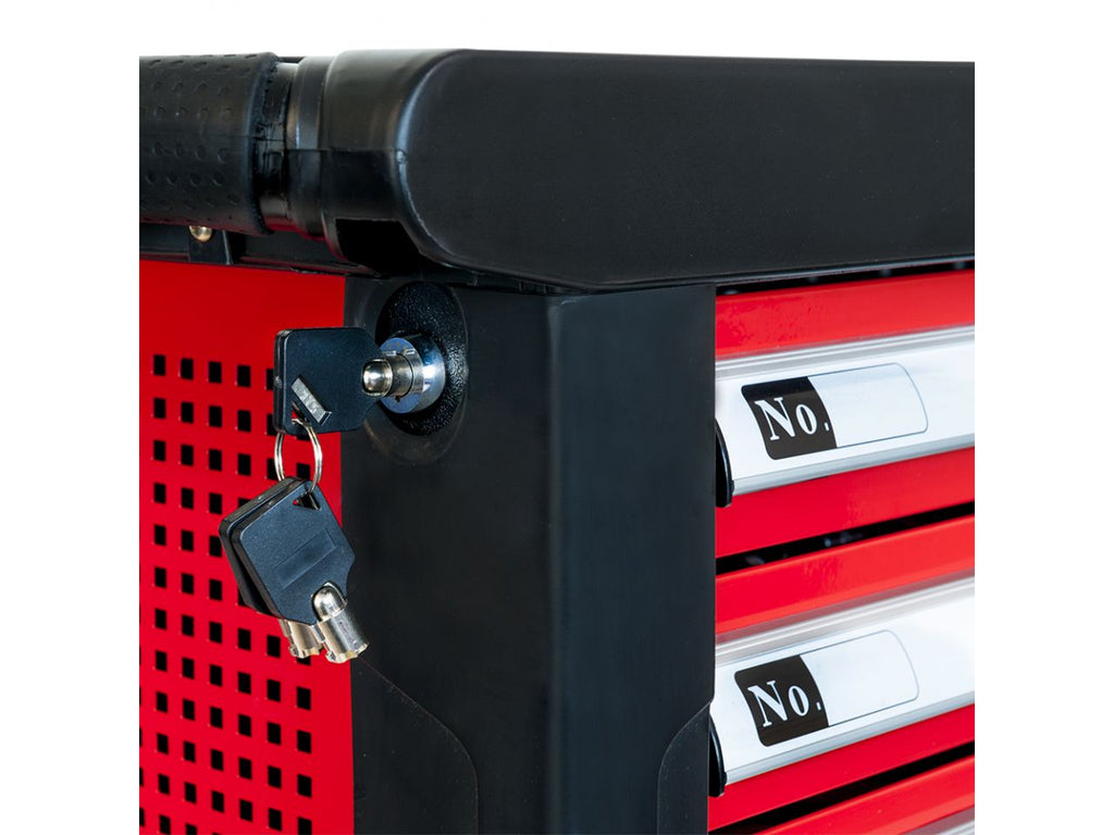 Deze gereedschapswagen is uitgerust met 7 laden. De bovenste 5 laden kunnen 25 kilogram dragen en de onderste twee 35 kilogram. De laden zijn niet seperaat van elkaar te openen. Dit wordt namelijk beveiligd door een veiligheidsmechanisme. Alle lades zijn uitgerust met versterkte geleiders en schuifmechanisme met kogellagers.