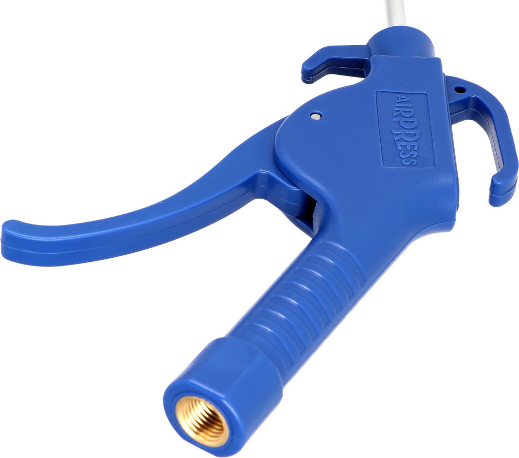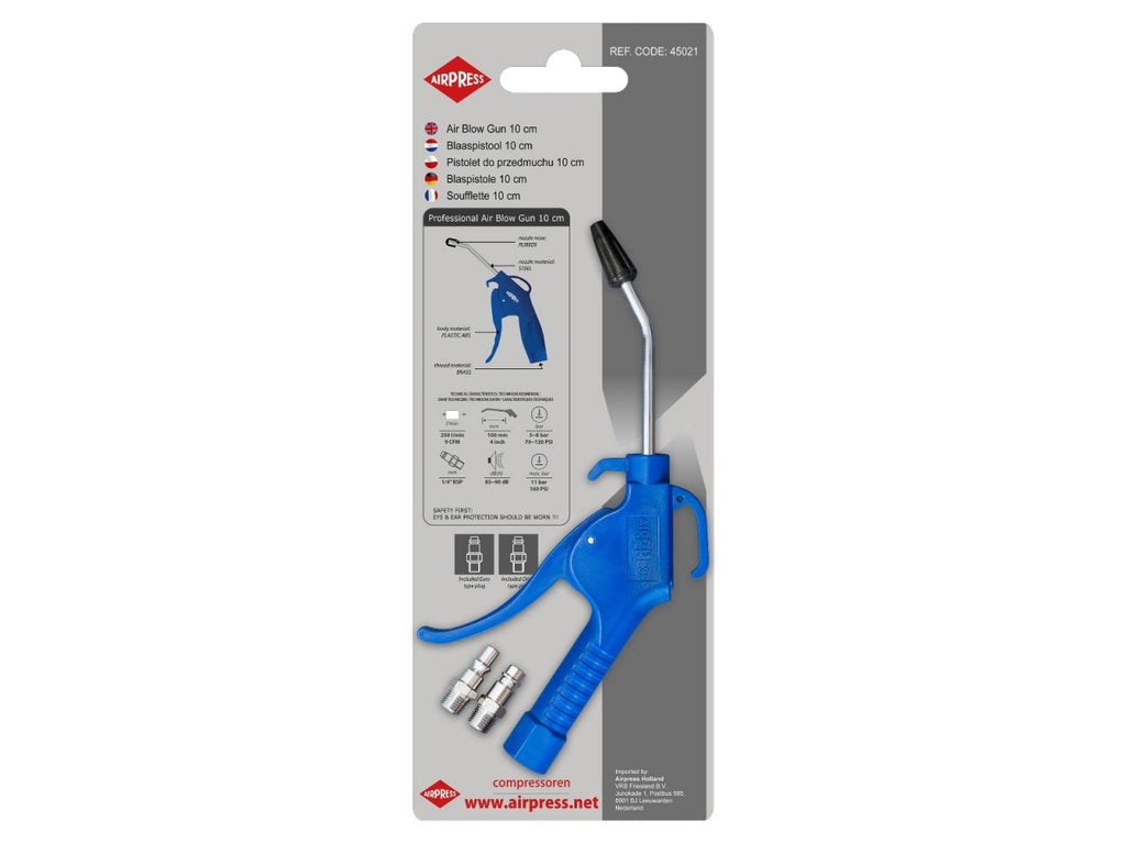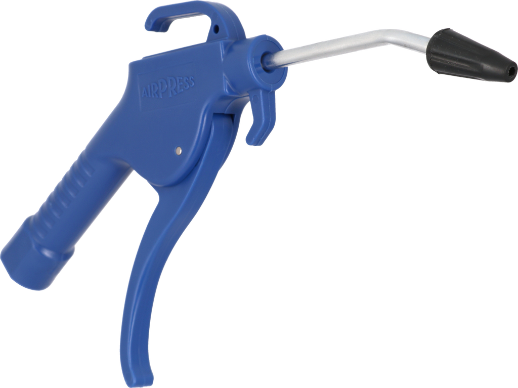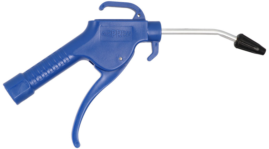 Gereedschap of bureaus schoonmaken kan met dit blaaspistool. Het blaaspistool is gemaakt van composiet, waarbij de neus van rubber is en de steel van 10 cm van staal. De binnendraad 1/4“ luchtinlaat is gemaakt van messing. Door het composiet is het blaaspistool in gewicht licht om vast te houden. Hierdoor wordt het werkgenot verhoogd.