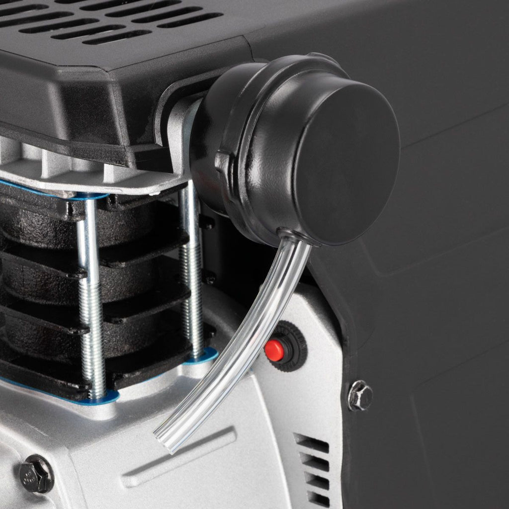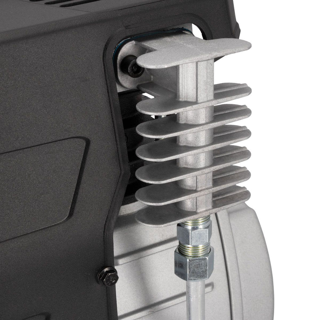 - Mobiliteit: dankzij de ergonomische handgreep en stevige wielen is de compressor eenvoudig te verplaatsen, zelfs op ongelijke ondergronden.