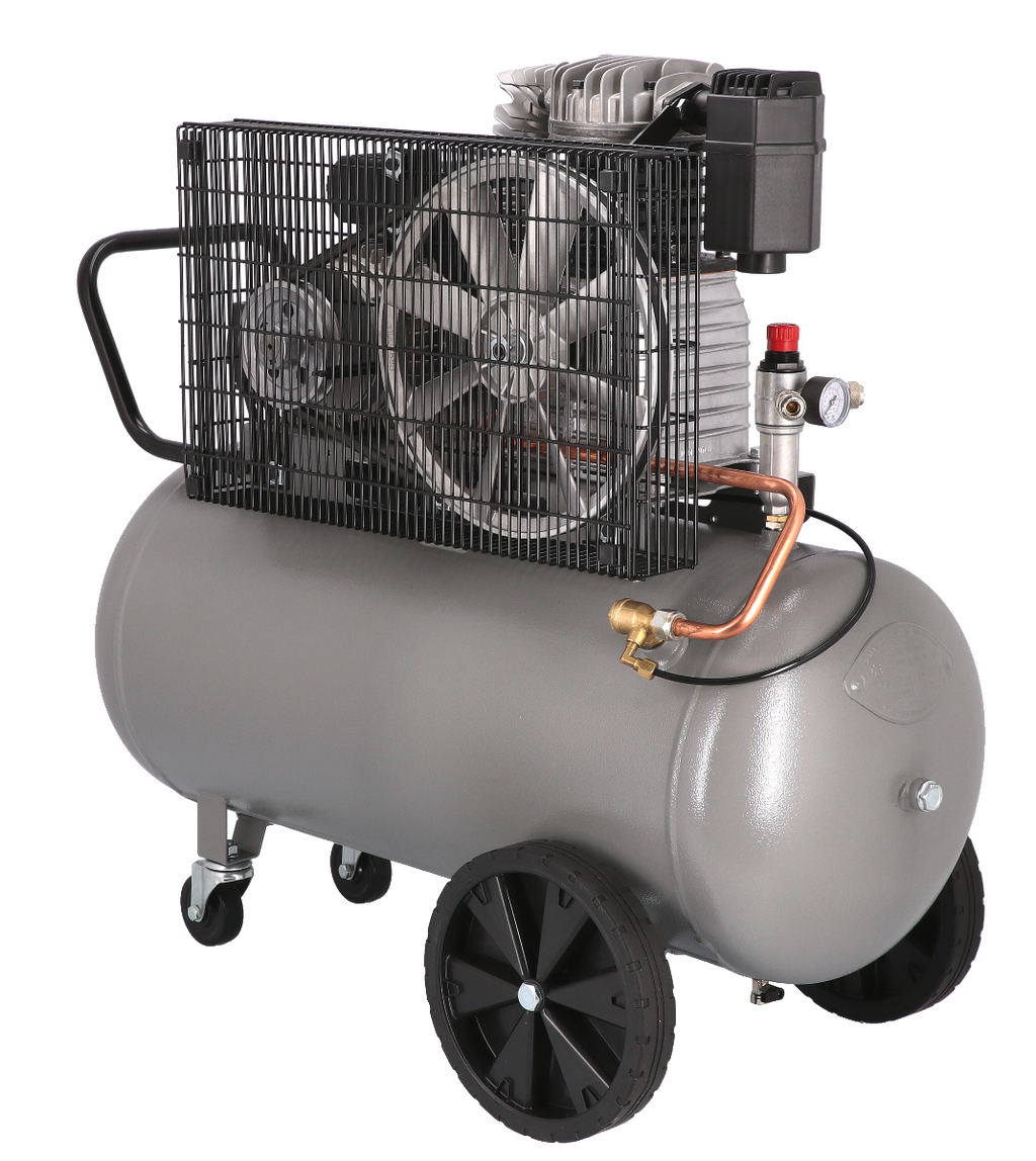 De compressor is uitgevoerd met een 100 liter drukvat, zodat je niet constant de motor hoort en dat je eerst een hele tijd vooruit kan zonder er weer opnieuw gecomprimeerd moet worden.