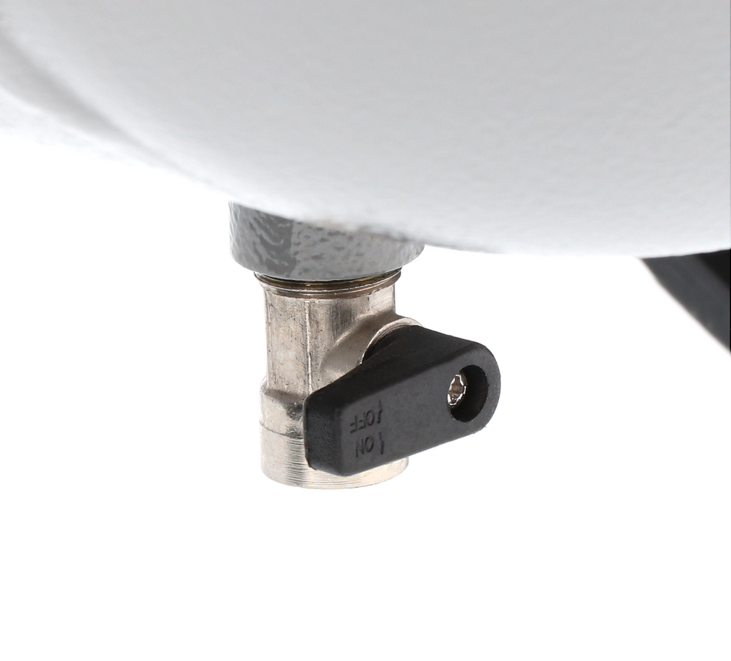 Bij deze compressor is het belangrijk dat je regelmatig het condenswater aftapt om corrosie te voorkomen. Ook moet je de oliecompressor periodiek controleren op olie, net als het luchtfilter.
