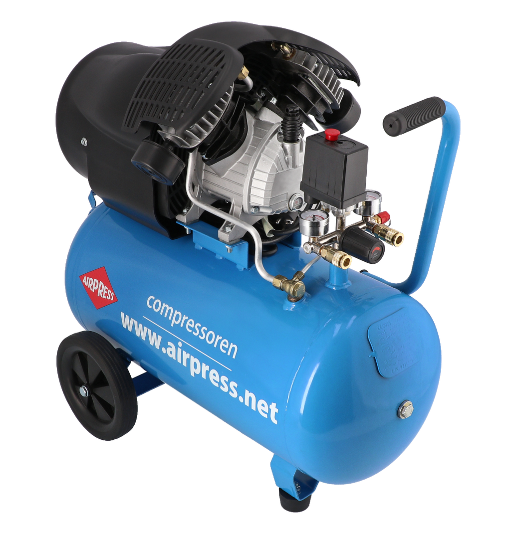 De compressor is voorzien van een onderstel met wielen en een greep, zodat het, ondanks het zware gewicht, gemakkelijk te verplaatsen is naar de plaats waar u wilt werken. Wel zo gemakkelijk wanneer u van de ene kant naar de andere kant van het gebouw moet. De compressor is voorzien van een 50 liter tank, zodat u een lange tijd vooruit kunt. Daarbij komend voordeel is dat de twee cilinder motor de tank snel vult, waardoor er weinig geluidshinder is.