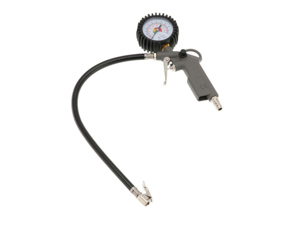 De manometer is eenvoudig af te lezen en is verdeeld in drie sectoren. Groen betekent dat er de juiste hoeveelheid lucht in de band zit, geel betekent iets te veel lucht in de band en rood betekent dat er echt teveel lucht in de band zit. In het rode en gele gedeelte moet je weer lucht uit de band laten lopen totdat het in het groene gedeelte komt en de juiste bandenspanning heeft.