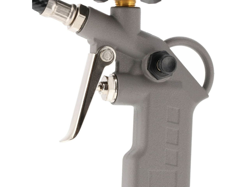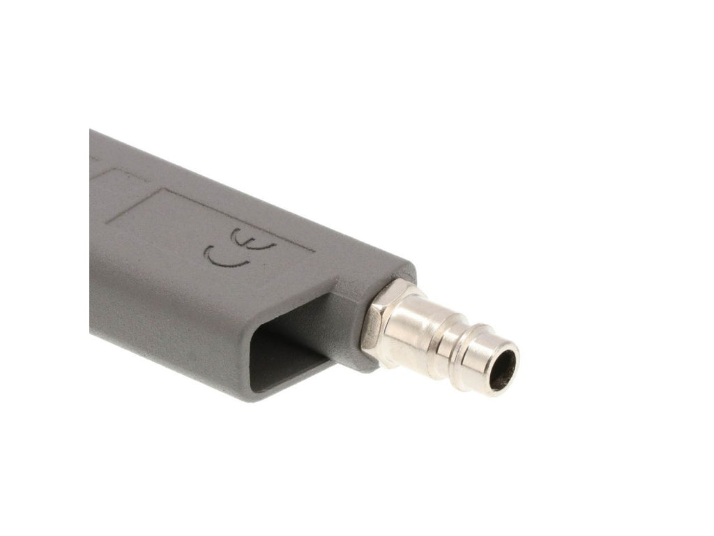 De bandenpomp is gemaakt van aluminium en ligt hierdoor licht in de hand. Bij het pakket worden twee insteeknippels geleverd, namelijk Orion 6 mm en Euro DN 7.2/7.4. Beide insteeknippels zijn voorzien van 3/8“ binnendraad. Deze insteeknippels draai je eenvoudig op de bandenpomp. Door de rubberen ring sluit het af en ontstaat er een luchtdichte verbinding.