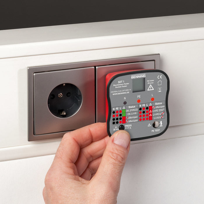 Snelle en eenvoudige test van de correcte aansluiting van wandcontactdozen, kabelhaspels en verlengkabels.