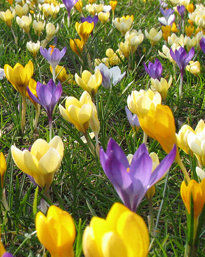 Een mix van subtiele kleuren van specie Crocussen. Door het koude vroege voorjaar blijven ze lang bloeien. Voor zowel in de border als in potten op terras of balkon. Zeer geschikt voor verwildering.