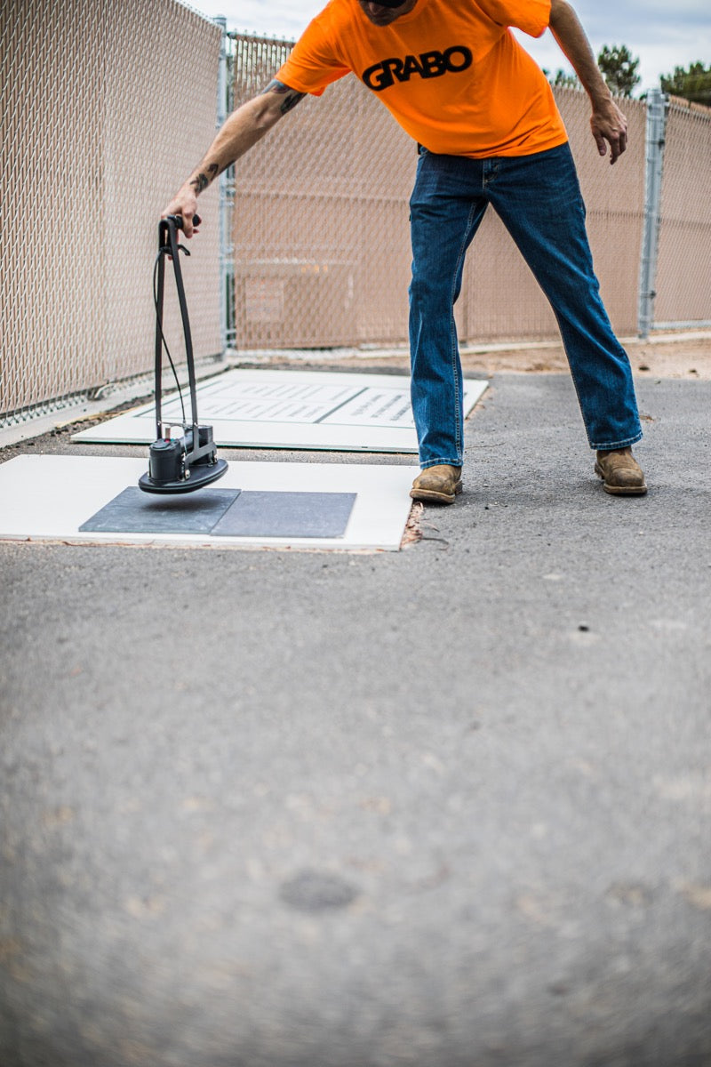 Een van de doelstellingen bij het maken van een draagbaar zwaar hijsgereedschap was het verminderen van werkgerelateerde vermoeidheid of blessures. Lange dagen in een gebukte houding werken om materiaal op te tillen kan gevolgen hebben voor de rug. Om dit scenario te vermijden, hebben wij het draagbaar hefgereedschap Erguo S1 ontwikkeld. Dankzij het ergonomisch ontworpen hulpstuk kan de werknemer het GRABO-hijsgereedschap bedienen zonder te bukken. Het hulpstuk past gemakkelijk in de 4 hijsogen naast de handgrepen van het gereedschap. Activeer het GRABO-gereedschap om uw materiaal op te tillen, til het materiaal op en positioneer het, en laat het gereedschap los van het materiaal, dit alles gebeurt in één snelle beweging zonder te bukken. De actuator op de handgreep helpt bij het bedienen van de functies. Het Erguo S1 hulpstuk is compatibel met alle modellen, behalve de Grabo H aangezien die ontworpen is voor eenvoudiger en korter gebruik.