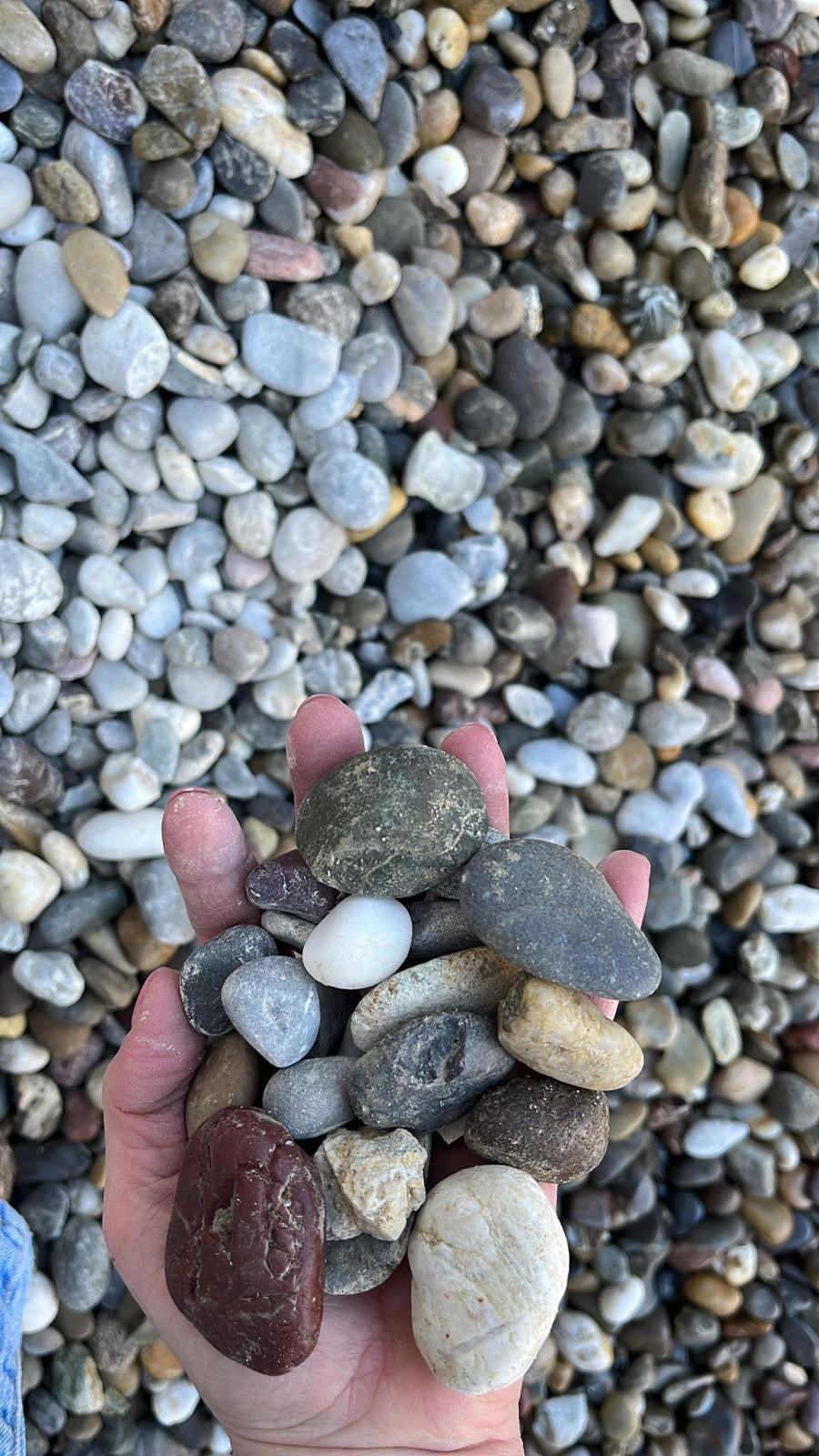 Grind is een natuurlijk gesteente en wordt gewonnen in rivieren door dat het gesteente door de rivier stroomt slijt het waardoor het ze mooie ronde vormen krijgt.