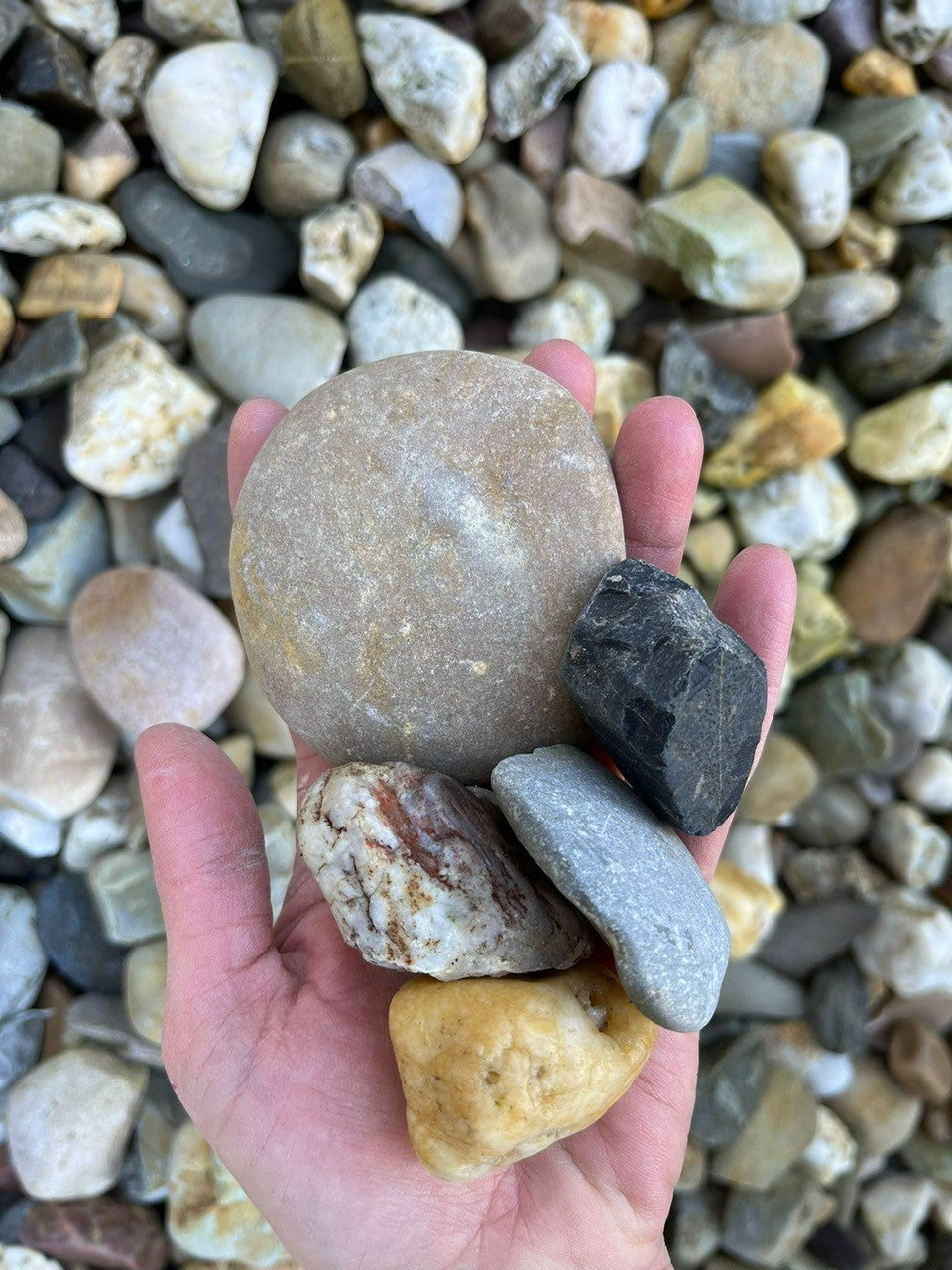 Grind is een natuurlijk gesteente en wordt gewonnen in rivieren door dat het gesteente door de rivier stroomt slijt het waardoor het ze mooie ronde vormen krijgt.