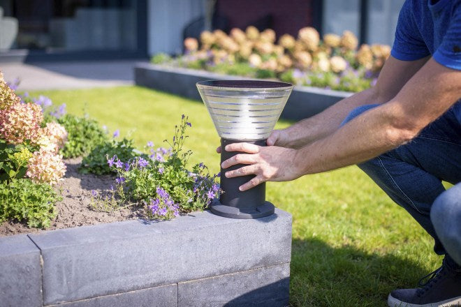 Rond, modern en tijdloos design. Plaats deze lamp in uw tuin en ervaar hoe die opgaat in de stijl van uw tuin. Van strak en vierkant tot landelijk en rond: hij komt in veel verschillende settingen goed tot zijn recht. De serie zal u niet snel vervelen en geeft daarom een extra dimensie aan de duurzaamheid van dit product.