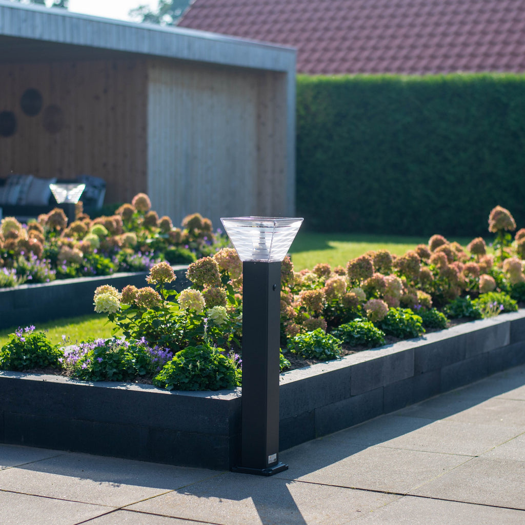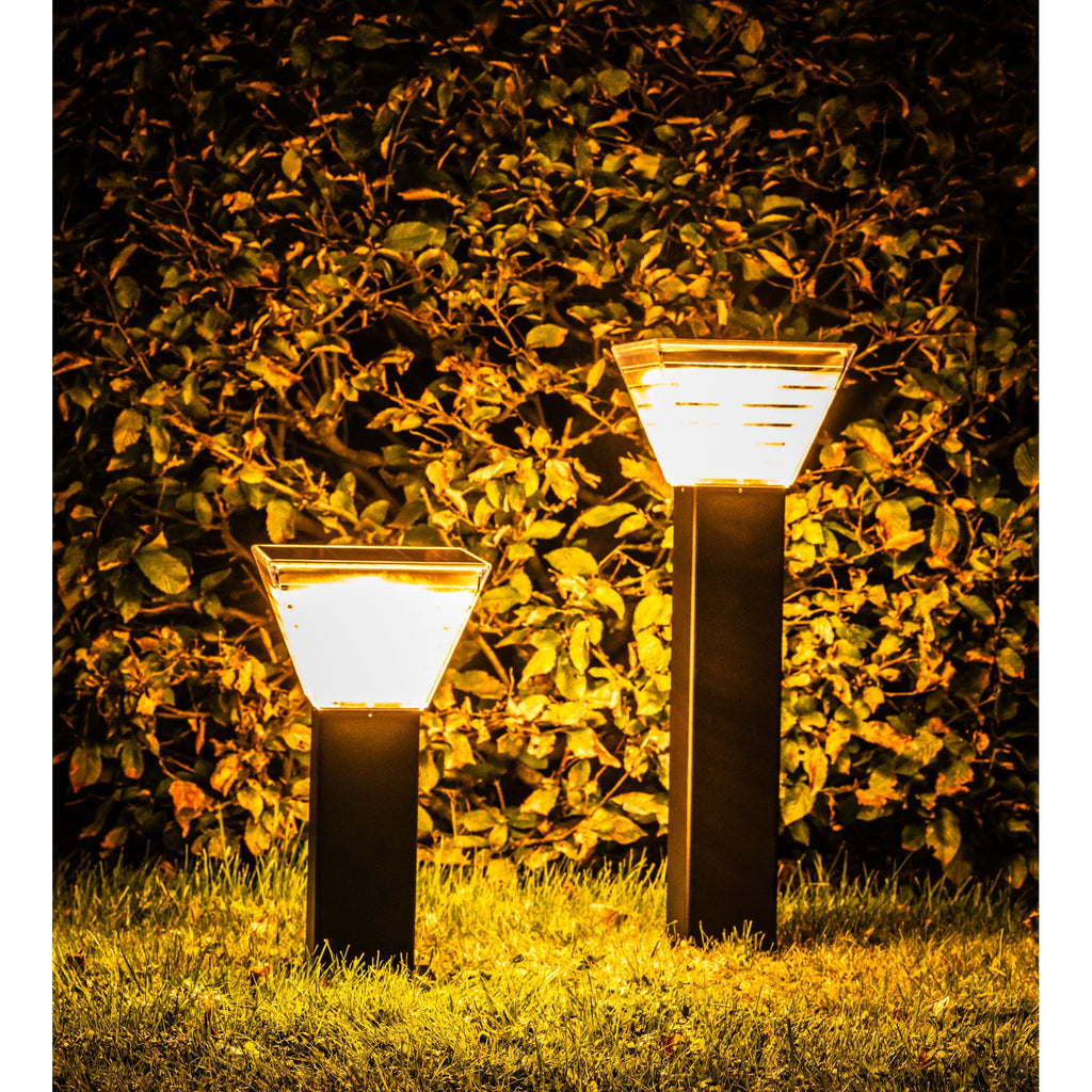 Deze hoge LED staande solar lamp is voorzien van een daglichtpaneel zodat er geen stroomkabels nodig zijn. U heeft dus geen stroomverbruik, geen installatiewerk, geen graafwerkzaamheden dus daardoor duurzaam, milieuvriendelijk en direct toepasbaar. Het daglichtpaneel is geïntegreerd in gehard glas voor hoge lichtdoorlatendheid. Deze volwaardige buitenverlichting op groene energie schakelt automatisch in als de zon ondergaat en weer uit als de zon opkomt. Afhankelijk van de hoeveelheid zonlicht overdag brandt de verlichting moeiteloos de gehele nacht.