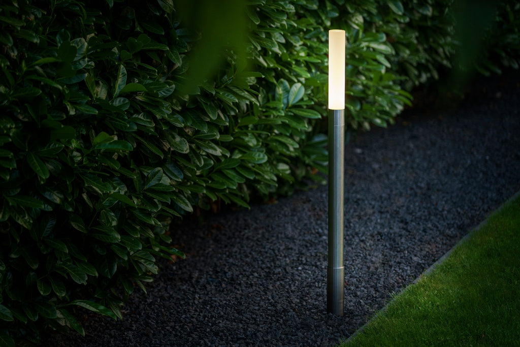De Nodin heeft een verbruik van 3W en is 102 cm hoog. Hij is gemaakt van RVS is voorzien van een warm witte lichtbron.