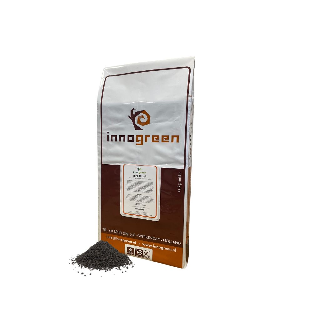 Een correcte zuurgraad (pH) van een bodem is essentieel voor gezonde planten. Een pH verhogen kan met behulp van kalk, maar een pH verlagen is een stuk moeilijker. Met pH-Min is het nu mogelijk de pH geleidelijk te verlagen. Zo kunnen zeer basische gronden met een (te) hoge pH naar beneden worden gebracht. De meststof kan ook onderhoudsmatig worden gebruikt bij zuurminnende planten. Breed inzetbaar op border en/of het gazon.