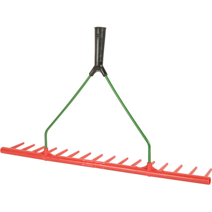 Gazonhark met essen steel, ideaal om gemaaid gras en bladeren samen te harken