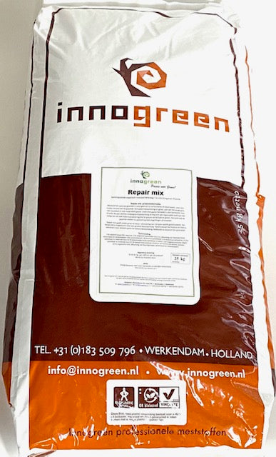 Repair mix geeft snelle groei, kleur en weerstand tegen ziekten. De uitstoeling van het gras wordt gestimuleerd. Het bevat extra magnesium voor meer aanmaak van bladgroen. Daarnaast bevat het humus en fulvine extracten voor snellere en betere beworteling. Makkelijk te doseren fijn granulaat. Voor een optimaal resultaat adviseren we de juiste dosering door één van onze adviseurs te laten bepalen aan de hand van de bodemgesteldheid.