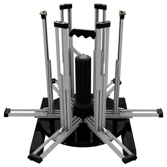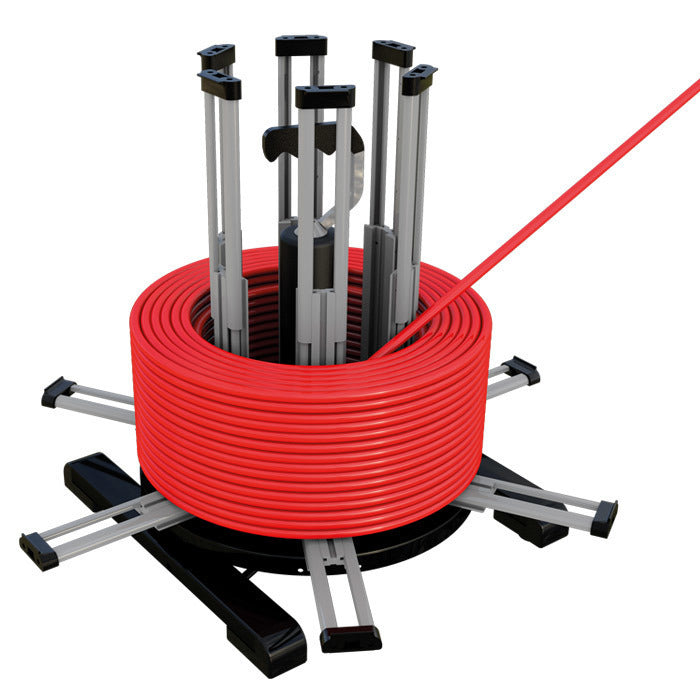 Apparaat dat geschikt is voor het afrollen van flexbuis en diverse soorten kabelringen nog verpakt in doos of folie. Met deze afroller kunt u eenvoudig kabels trekken zonder last te hebben van spiraalvorming. Er ontstaat een enorme tijdwinst, omdat men gemakkelijk alleen kan werken. Doordat de kabel van binnenuit wordt afgewikkeld blijft de folie verpakking in tact en kan er dus gemakkelijk van kabelring gewisseld worden zonder dat de verschillende kabels in de war raken. Ook het transporteren en opslaan van de Spinner met de kabelring en al gaat moeiteloos, omdat deze niet meer ruimte in beslag neemt dan de kabelring zelf. Onderzijde voorzien van vier rubberen anti slip buffers.