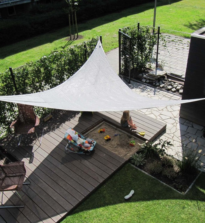 Met dit schaduwdoek waterdoorlatend van kwaliteitsmerk Sunfighters creëer je de ideale schaduw op jouw terras. Model gelijkzijdige driehoek. Dit lucht- en waterdoorlatende schaduwdoek is verkoelend. Door de kleine gaatjes in het doek ventileert het goed, wat de temperatuur onder het schaduwdoek verlaagd. De windgevoeligheid is hierdoor ook minder. Voorzien van dubbel gestikte randafwerking met verstevigingsband en rvs bevestigingsringen op de hoeken, lichtgewicht, eenvoudig zelf te monteren met meegeleverde montage-instructie.