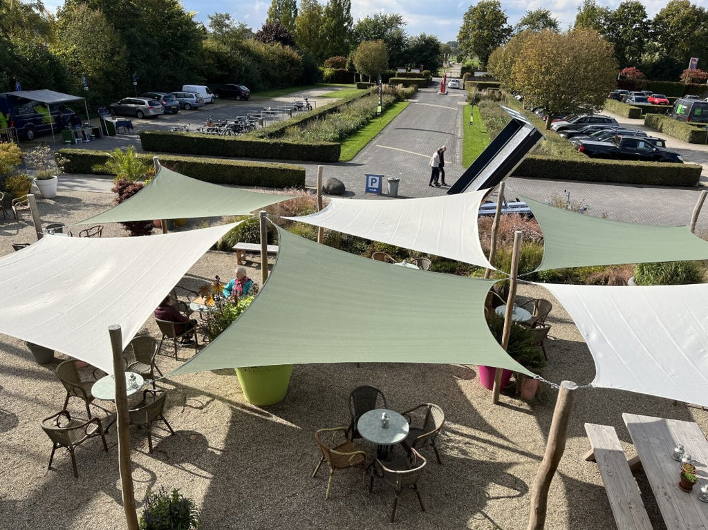 Je bevestigt het schaduwdoek aan gevel en/of palen. Een stevige boom of verankerde schuttingpaal kan ook dienen ter bevestiging. Het Sunfighters schaduwdoek waterdoorlatend is makkelijk zelf te bevestigen met meegeleverde montage-instructie.