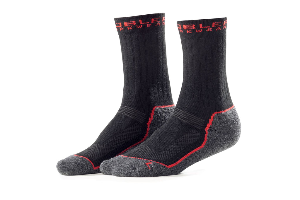 DESIGN|Contrasterende elementen: zool en teen, bies van teen tot hiel, geborduurd logo en rechts/links markering|FUNCTIE|Klimaatregulerend hightech materiaal|De tailleband van de sok past zich aan de omtrek van de benen aan, niet wegglijden of vernauwen|Vulling op plaatsen met veel slijtage, zoals tenen en hiel, beschermt tegen blaren en schuren|Schachtvulsysteem beschermt en bevordert de luchtcirculatie |Vochtafvoerend voetbed|Ergonomisch teen- en voetbed rechts en links|